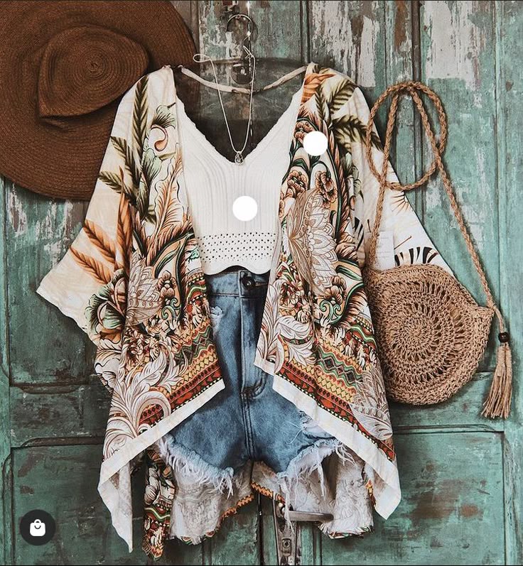 • Щоденний образ: джинсові шорти, вільна блуза з вишивкою, замшевий жилет, сандалі-гладіатори, велика сумка з бахромою.