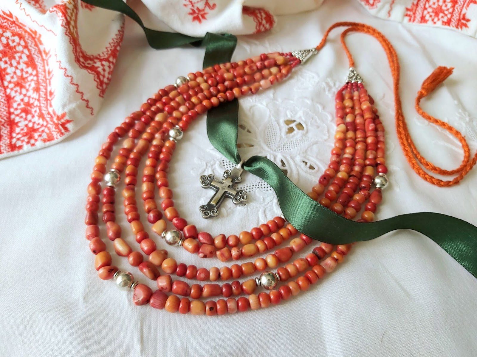- Корали. Це дуже популярне намисто з натурального червоного коралу. Залежно від насиченості кольору та якості обробки матеріалу визначалася його ціна. Але, в будь-якому разі, такі прикраси коштували недешево. Бідні подолянки теж хотіли мати подібне намисто, але, не маючи можливості придбати його, купували підробки з целулоїду.